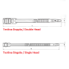 La testina piatta, la grande superficie di contatto ed il sistema di chiusura con creamagliera esterna rendono questo tipo di fascetta particolarmente indicata per applicazioni su linee sospese, evitando danni all'isolamento