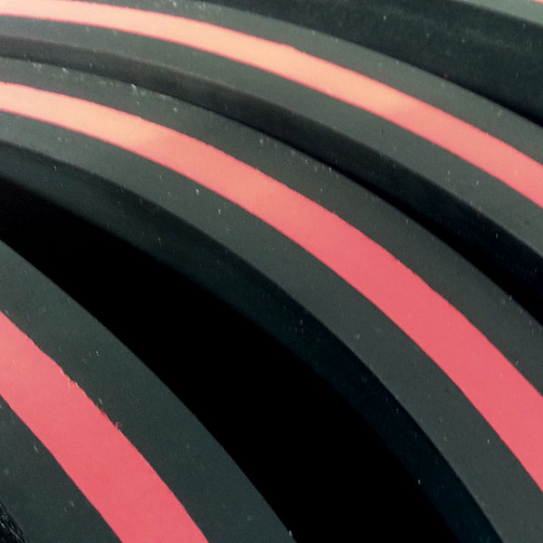 E’ costituito da tre strati di gomma. La copertura e il sottostrato sono composti da gomma antiabrasiva nera più dura, mentre il nucleo centrale è composto da gomma para di colore rosso più morbida