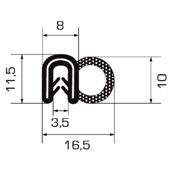 La struttura alveolare della parte in gomma espansa dei profilati è classificata a “microcelle” con alveoli estremamente uniformi e non comunicanti l’uno con l’altro (cosidette "cellule chiuse")