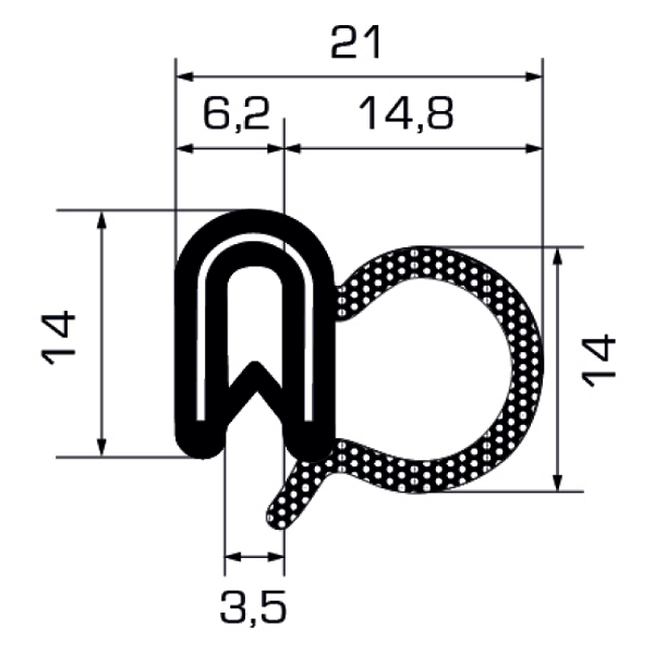 La struttura alveolare della parte in gomma espansa dei profilati è classificata a “microcelle” con alveoli estremamente uniformi e non comunicanti l’uno con l’altro (cosidette "cellule chiuse")