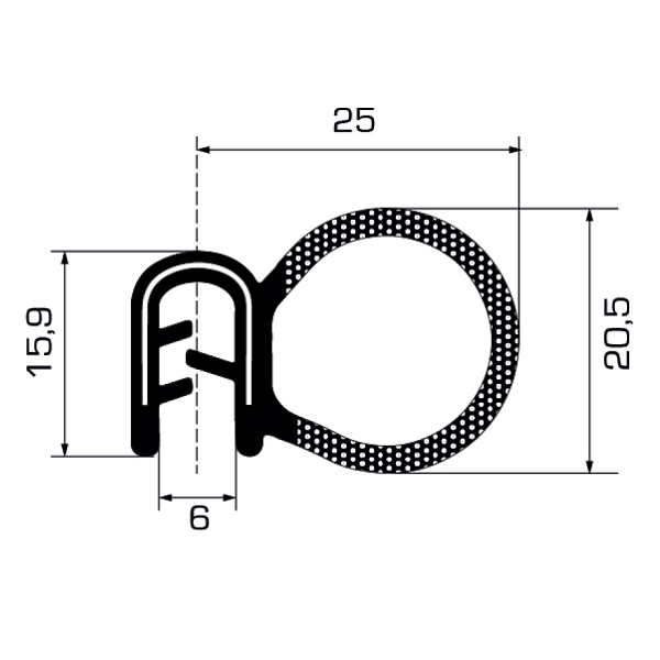 La struttura alveolare della parte in gomma espansa dei profilati è classificata a “microcelle” con alveoli estremamente uniformi e non comunicanti l’uno con l’altro (cosidette "cellule chiuse")