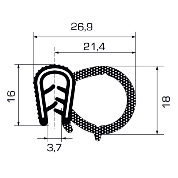 La struttura alveolare della parte in gomma espansa dei profilati è classificata a “microcelle” con alveoli estremamente uniformi e non comunicanti l’uno con l’altro (cosidette "cellule chiuse")