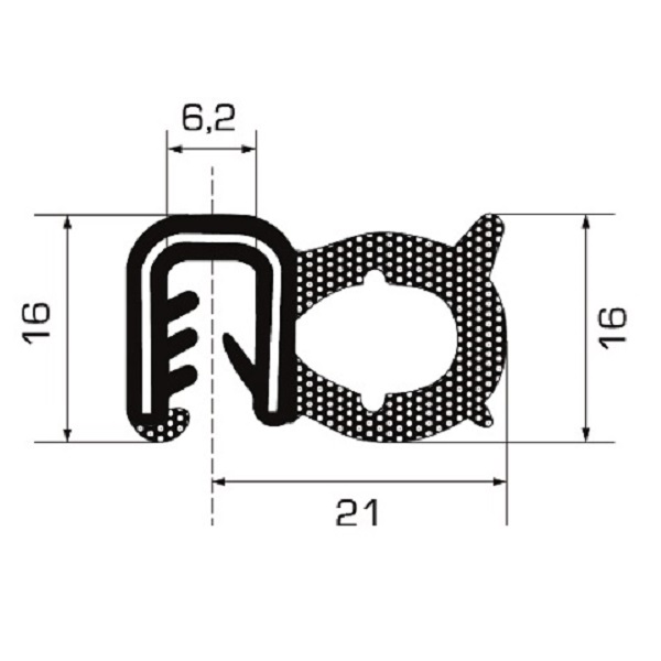 La struttura alveolare della parte in gomma espansa dei profilati è classificata a “microcelle” con alveoli estremamente uniformi e non comunicanti l’uno con l’altro (cosidette "cellule chiuse")
