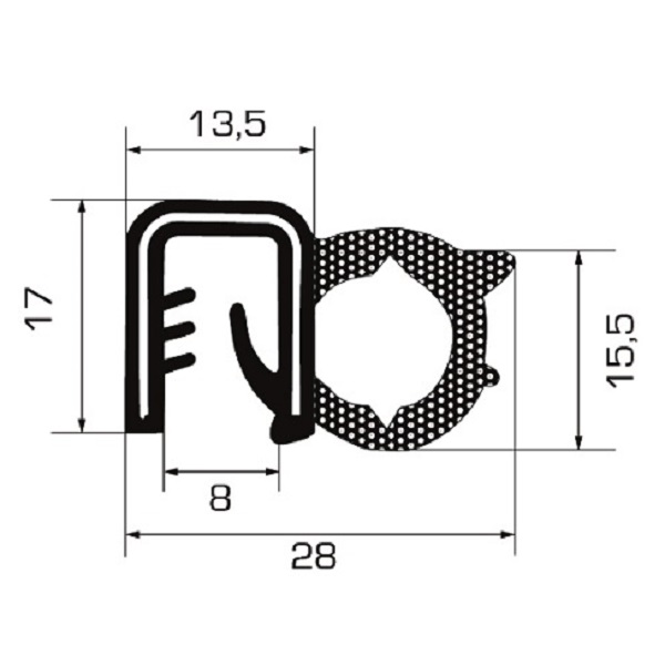 La struttura alveolare della parte in gomma espansa dei profilati è classificata a “microcelle” con alveoli estremamente uniformi e non comunicanti l’uno con l’altro (cosidette "cellule chiuse")