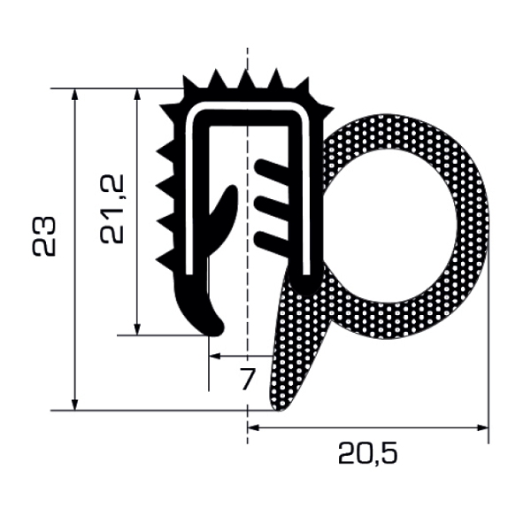 La struttura alveolare della parte in gomma espansa dei profilati è classificata a “microcelle” con alveoli estremamente uniformi e non comunicanti l’uno con l’altro (cosidette "cellule chiuse")