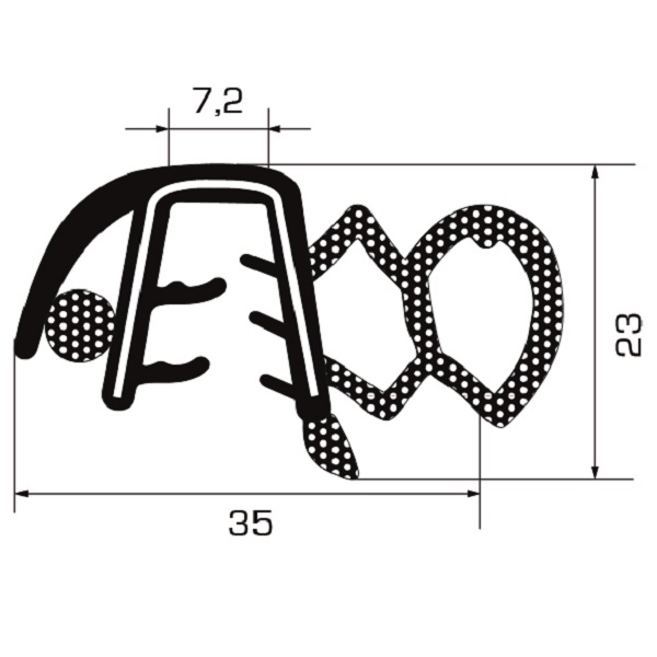 La struttura alveolare della parte in gomma espansa dei profilati è classificata a “microcelle” con alveoli estremamente uniformi e non comunicanti l’uno con l’altro (cosidette "cellule chiuse")