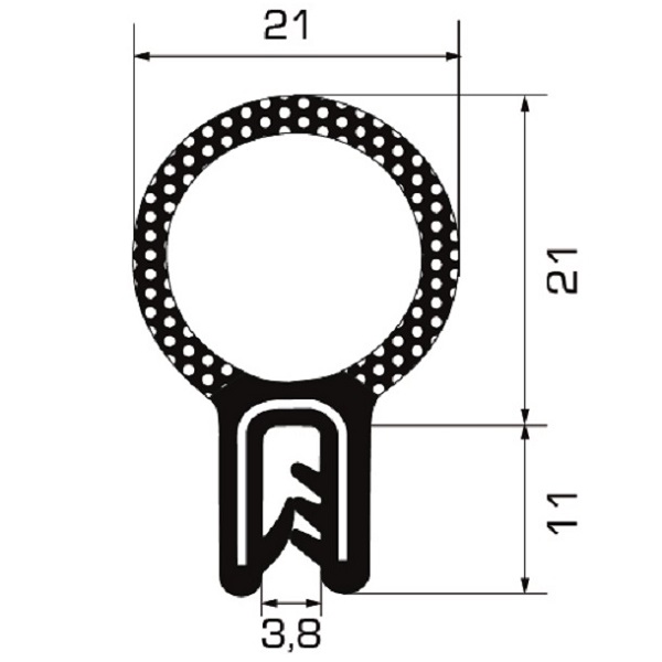 La struttura alveolare della parte in gomma espansa dei profilati è classificata a “microcelle” con alveoli estremamente uniformi e non comunicanti l’uno con l’altro (cosidette "cellule chiuse")