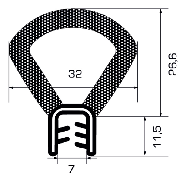 La struttura alveolare della parte in gomma espansa dei profilati è classificata a “microcelle” con alveoli estremamente uniformi e non comunicanti l’uno con l’altro (cosidette "cellule chiuse")