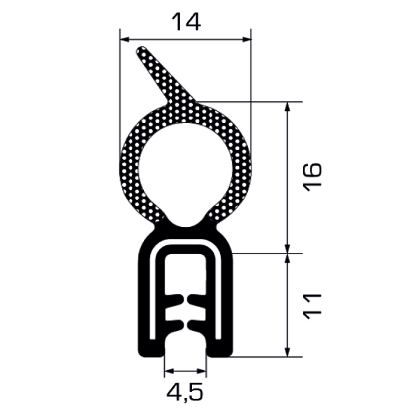 La struttura alveolare della parte in gomma espansa dei profilati è classificata a “microcelle” con alveoli estremamente uniformi e non comunicanti l’uno con l’altro (cosidette "cellule chiuse")
