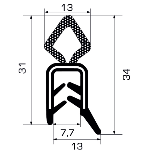 La struttura alveolare della parte in gomma espansa dei profilati è classificata a “microcelle” con alveoli estremamente uniformi e non comunicanti l’uno con l’altro (cosidette "cellule chiuse")