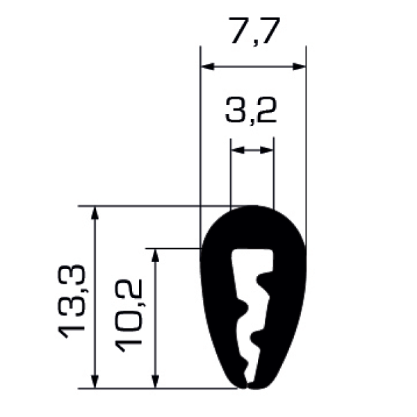 La struttura alveolare della parte in gomma espansa dei profilati è classificata a “microcelle” con alveoli estremamente uniformi e non comunicanti l’uno con l’altro (cosidette "cellule chiuse")