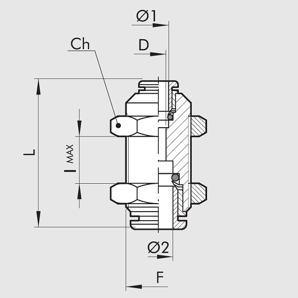 Raccordo Automatico Diritto Intermedio Passalamiera (R10) Ø14-Ø14 / M24x1
