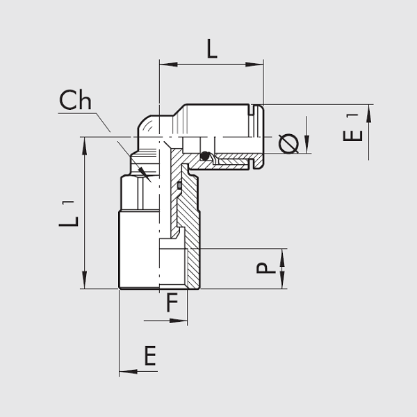 Raccordo Automatico L Femmina Girevole Tecnopolimero (R34/F) Ø8 - 1/4