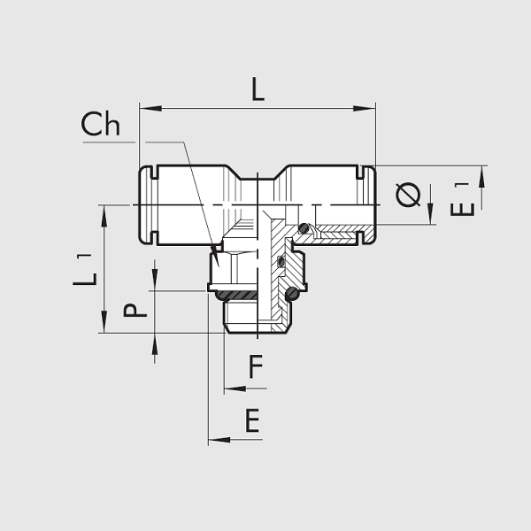 Raccordo Automatico T Centrale Maschio Girevole Tecnopolimero (R35) Ø6 - 1/8