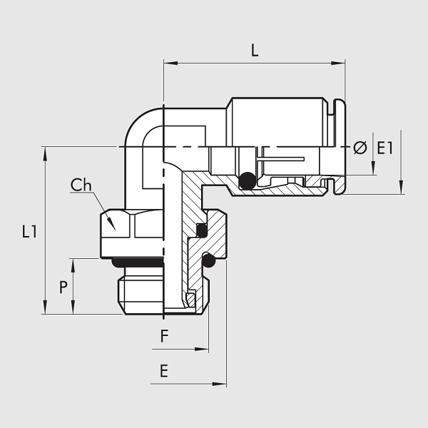 Raccordo Automatico Alimentare L Maschio Cilindrico Girevole OT-E (R31 OT-E) Ø8 - 1/4