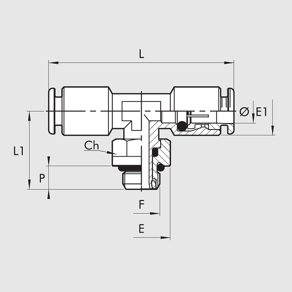 Raccordo Automatico Alimentare T Centrale Maschio Cilindrico Girevole OT-NSF (R32 OT-NSF) Ø6 - 1/8