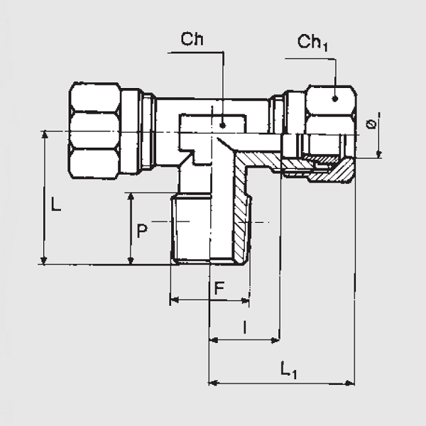 Raccordo a Bicono T Centrale Maschio Conico (B7) Ø10/8 - 3/8