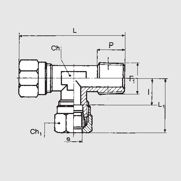 Raccordo a Bicono T Laterale Maschio Conico (B8) Ø8/6 - 1/8